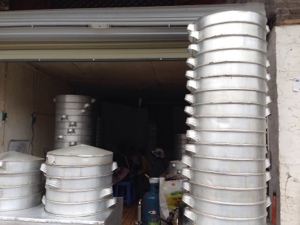 At the same market, this is the largest stack of large of dumpling steaming bins I
