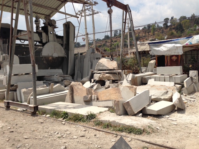 We drove three hours south to Shaxi, the oldest Bai village in the region, and a main stopping point on the ancient Tea Horse Road (A good article from National Geographic on the Tea Horse Road: http://ngm.nationalgeographic.com/2010/05/tea-horse-road/jenkins-text). On the way, we passed a village where marble cutting is the main enterprise: