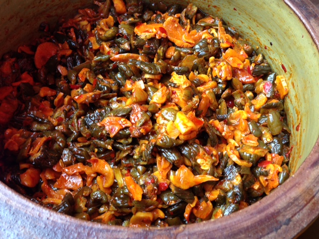 Of course, there are more hot fresh and dried chilies than I’ve seen anywhere. To get chili powder, this manual mashing unit churns crushed chilies.
