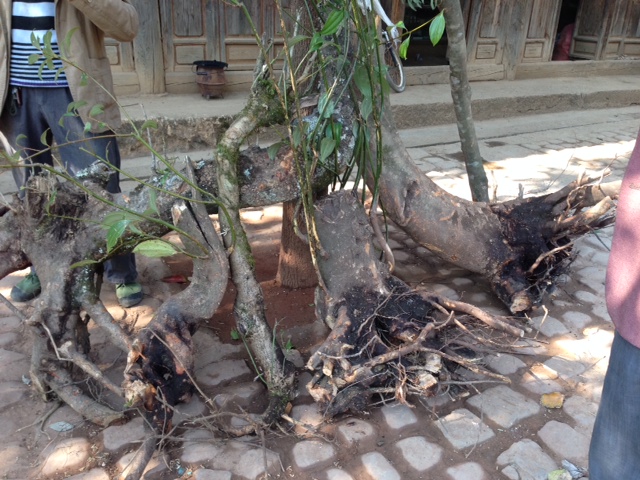 We climbed up to Lion’s Hill Park in Lijiang the last evening there-and got some ideas about pruning one of our rhododendrons into a potted penzai (the Japanese bonsai is derived from the Chinese) tree, like this: