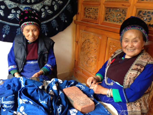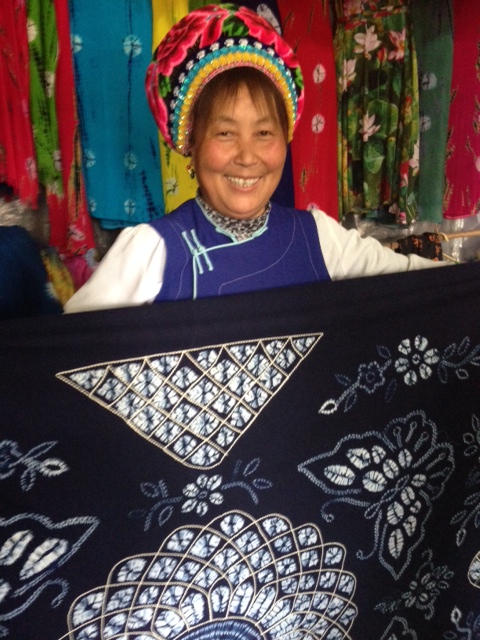 Also in Baisha is the Naxi Embroidery Institute, where young girls toil 8-10 hrs /day under a master to learn a very old Chinese form of extremely detailed embroidery and what really is fine art. It takes 20-30 years to become a master. The masters were all jailed and some died during the Cultural Revolution, almost taking down the entire tradition. Not only has it been revived, but the masters are now widely celebrated and revered in China. Here is one of two matching teapot embroideries we purchased, and I apologize for the poor quality picture, but the lights in the exhibit room were very bright:
