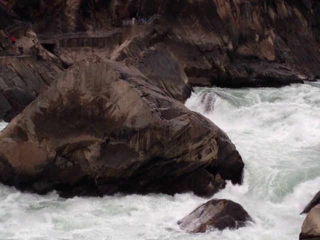 Tiger Leaping Gorge is the deepest gorge in the world, and you can take a fairly dangerous 2 day hike to do the entire area properly. But, we merely chose to walk down the 1000 stairs to get close to the rushing Upper Yangtze River, and the rock the tiger supposedly jumped over to while escaping some ancient hunters: